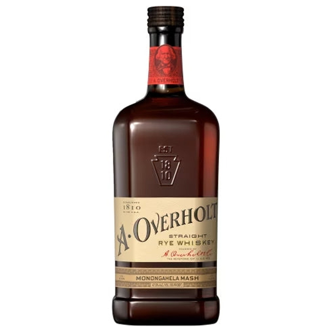 A OVERHOLT WHISKEY STRAIGHT RYE MONONGAHELA MASH 4YR KENTUCKY 750ML